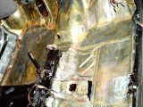 The floorpans and all associated nonsense are finally, officially completed. All the welds and seams have been caulked from underneith using polyurethane roofing caulk. It takes a long time to cure (especially in this weather), but it sticks to anything and resists solvents better than silicone (which turns to jello when exposed to gasoline). I don't care for the water based acrylic caulk, as it doesn't stick as well and...wel it is water-based. I also coated the fenders with the stuff as a replacement for the rubberized coating that I stripped off.
