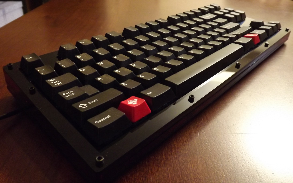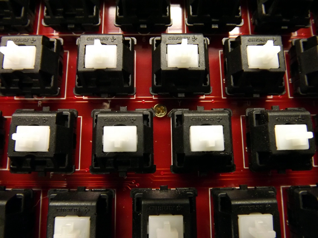 The other issue is a mechanical one. The PCB is mounted to the case at either end with screws, but there are no screws in the center. This causes the PCB to bow up slightly in the center, giving the keyboard a bouncy feel on the middle keys. Some folks have used a layer of thin foam between the PCB and the case to absorb this flex, but it doesn't really address the root problem.
