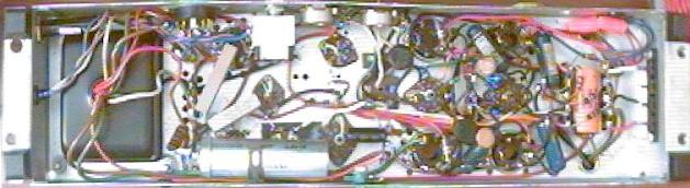 Here you can see the amp in its almost original form. The vibrato circuitry and external leslie umbilical wiring has been removed and the output bias circuitry has been tweaked to give me an adjustable voltage down to about -28.5V. There is still no means to adjust the bias for each tube.