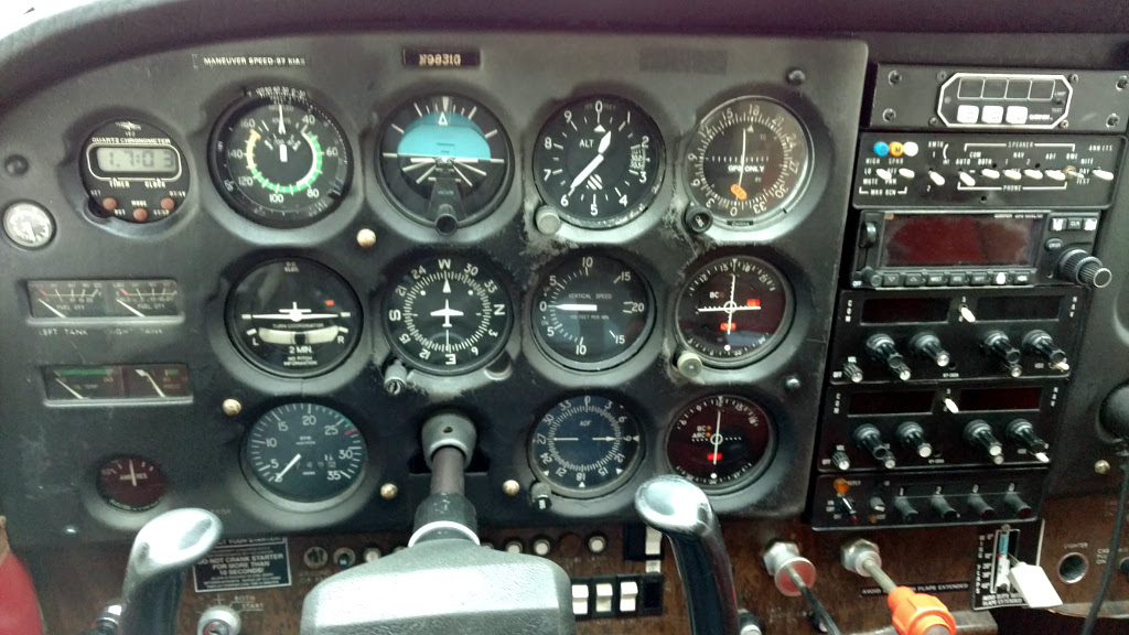 The 152 is down for maintenance, so I flew in N9831G today. It's also a 1979 Cessna 172N like the one I did my discovery flight in. Neither airplane is pretty, but they seem to be well maintained. They do the job.
