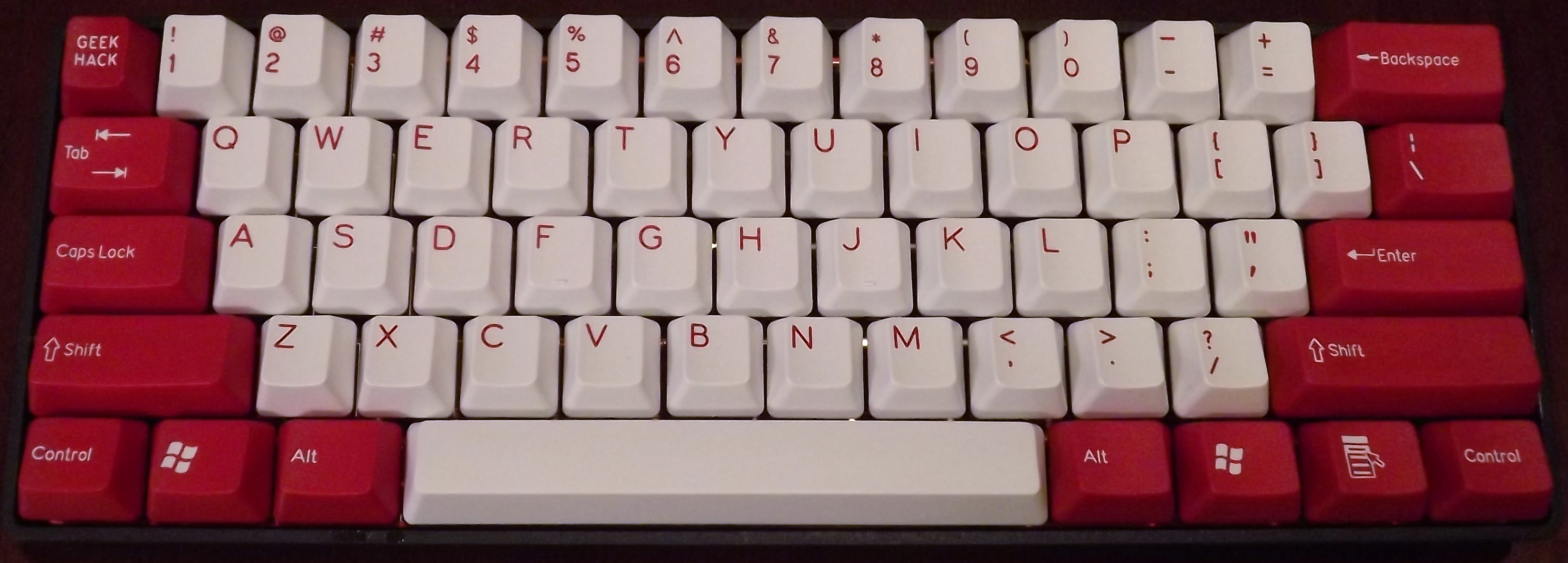 This is the CM Storm Quick Fire Rapid with Cherry MX red switches sporting double-shot "Ragnarok Red" key caps from signature plastics. Much better than the gaudy caps it comes with. They have more texture to them, too.