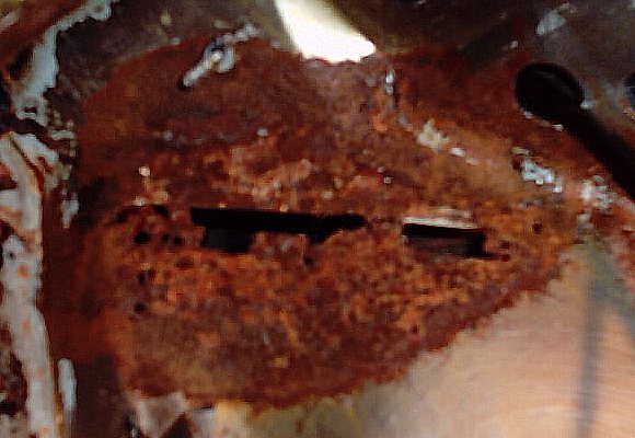 The driver's side is out and the paint stripped. I was disappointed to find the rear K-frame mount on that side is bent as well. This one is bent down instead of up. Even so, I was unable to straighten it. I may give it one more shot with brute force (dropping the car on a jack stand) before welding, though. That's the only way I've ever been able to straighten heavy gauge frame rail steel in the past. Also, the driver's side fender is rusted out pretty bad at the top where it meets the firewall. This area is prone to rust on these cars if it has ever been in an accident. The body caulk cracks and then water, salt and debris gets packed into the seam by the wheels. The passenger side is rusty too, but still solid. If you see any cracks in the body caulk from the fenders, make sure the inside doesn't look like this: